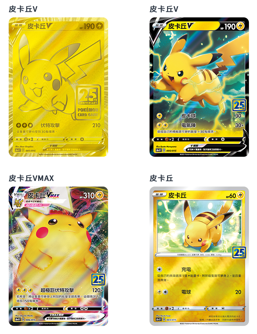 以豪華特別式樣的金色的皮卡丘V為首,收錄了各種不同的皮卡丘卡牌。